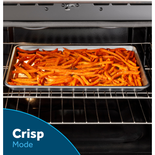 COCINA A GAS CON DORADOR ELECTRICO! EL MODO CRUJIENTE UTILIZA LAS RESISTENCIAS DE HORNEAR Y ASAR PARA LOGRAR RESULTADOS SIMILARES A LOS DE UNA FREIDORA DE AIRE. PERFECTO PARA LAS FRITURAS. ADEMAS, PREPARA LA COMIDA MÁS RÁPIDO GRACIAS A UN HORNO CON PRECALENTAMIENTO RÁPIDO. EN SOLO 7 MINUTOS*, TENDRÁS UN HORNO PERFECTAMENTE PRECALENTADO.