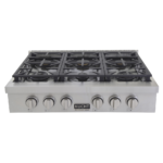 CUBIERTA RANGE TOP 36″, EN ACERO CON 6 HORNILLAS DE HASTA 21MIL BTUS.